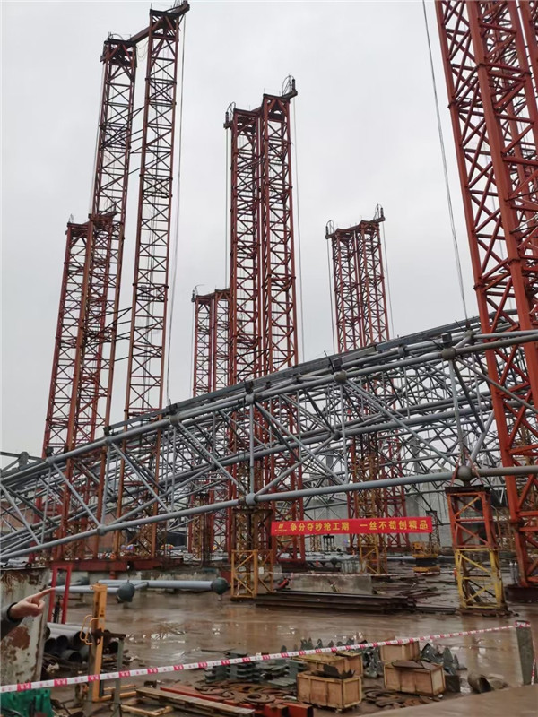 除了盘算机控制系统的资助,项目部还接纳高精度全站仪等一系列装备,实时监测提升历程中要害丈量点的位移转变,并安排工人丈量磨练,使提升同步性控制获得多重包管,最终顺遂向公司和业主上交了一份知足的答卷,再一次彰显了尊龙凯官网入口钢构在“高、新、尖”钢结构工程领域的雄厚实力。