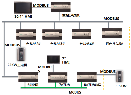 ϵͳÉèÖÃ8̨°¬¸¥É±´²©ballbet¹ÙÍøMC200EϵÁÐPLC£¬·ÖΪËÍÖ½£¨1#Õ¾£©¡¢Ò»É«£¨2#Õ¾£©¡¢¶þÉ«£¨3#Õ¾£©¡¢ÈýÉ«£¨4#Õ¾£©¡¢4É«£¨5#Õ¾£©¡¢¿ª²Û£¨6#Õ¾£©¡¢¿ª²Û£¨7#Õ¾£©ºÍÄ£ÇУ¨8#Õ¾£©£¬Ã¿¸ö²¿·Ö×ÔÁ¦¿ØÖÆ¡£
